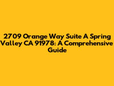 Hey guys! Let's dive into the details of 2709 Orange Way Suite A, Spring Valley, CA 91978. This address isn't just a string of numbers and letters; it's a gateway to understanding a specific location in Spring Valley. In this guide, we'll break down everything you need to know about this address, from its location and surrounding area to potential businesses that might be operating there. We will explore the area's characteristics, including local amenities, neighborhood demographics, and what makes this particular spot in Spring Valley unique. So, buckle up! We are about to embark on a journey that decodes this address and offers a comprehensive view of what it represents in the heart of Spring Valley. This will help you find everything you need to find this address and the services in that area.