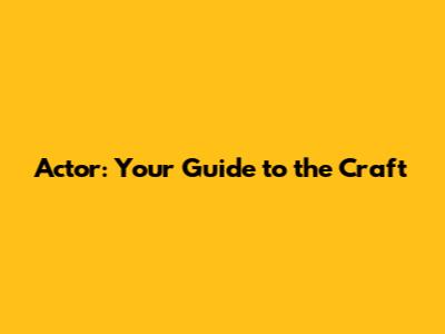 Actor: Your Guide To The Craft