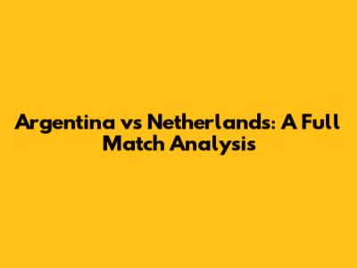 Argentina Vs Netherlands: Full Match Analysis
