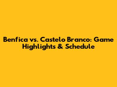Benfica Vs. Castelo Branco: Game Highlights & Schedule