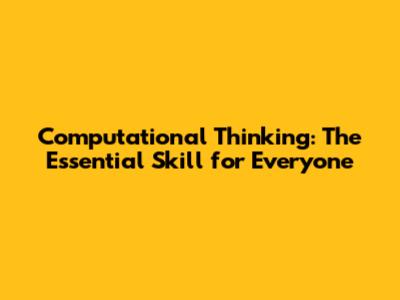 Computational Thinking: The Essential Skill For Everyone