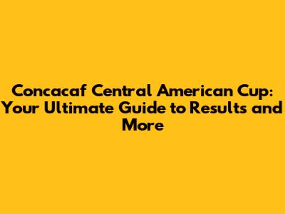 Concacaf Central American Cup: Results, Highlights & Analysis