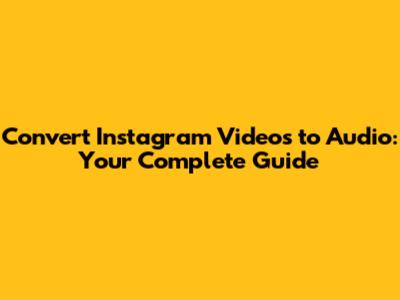 Convert Instagram Videos to Audio: Your Complete Guide