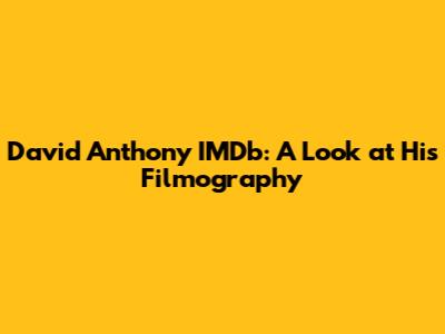 David Anthony IMDb: A Look At His Filmography