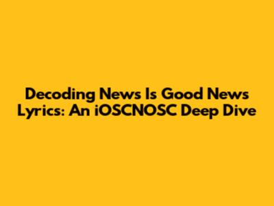 Hey guys! Ever get that feeling when a song just gets you? When the lyrics resonate so deeply, you feel like the artist peeked inside your soul? Well, that's how I felt when I first heard "News Is Good News," especially in the context of iOSCNOSC. Now, you might be scratching your head, wondering, "What's iOSCNOSC got to do with a song?" Trust me, stick around, and we'll break it all down. We're diving deep into the lyrics, exploring their meaning, and connecting them to the ever-evolving world of iOSCNOSC. Consider this your ultimate guide to understanding this track on a whole new level. Whether you're a die-hard fan or just curious, there's something here for everyone. So, let's get started and unlock the secrets hidden within "News Is Good News!"