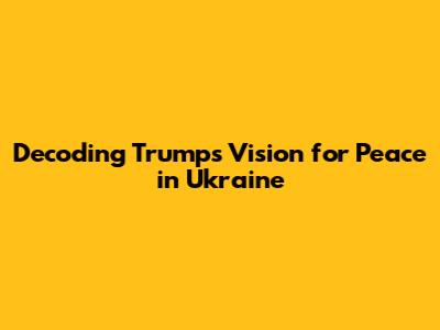 Decoding Trump's Vision For Peace In Ukraine