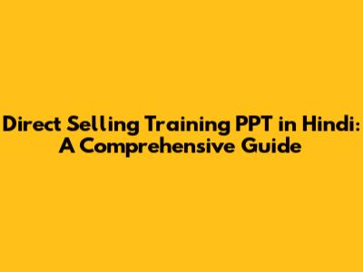 Direct Selling Training PPT In Hindi: A Comprehensive Guide