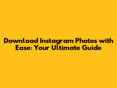 By understanding these tools and employing them wisely, you can build your own Instagram photo download toolkit. Now go forth and save those inspiring images, keeping in mind the power and responsibility that comes with accessing content online. Happy downloading!