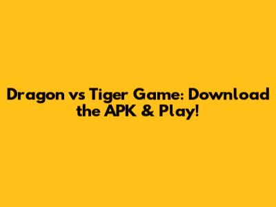 How to Download and Install the Dragon vs Tiger APK