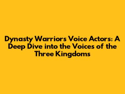 Dynasty Warriors Voice Actors: A Deep Dive Into The Voices Of The Three Kingdoms