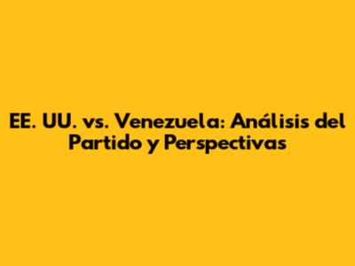 EE. UU. Vs. Venezuela: Análisis Del Partido Y Perspectivas