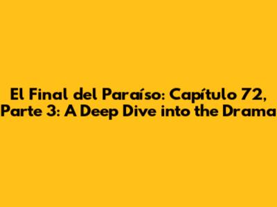 Hey everyone! Get ready to dive deep into the drama because we're breaking down El Final del Paraíso Capítulo 72, Parte 3! This episode was packed with twists, turns, and those intense moments that have us all hooked. For those of you who've been following along, you know this show keeps you on the edge of your seat. So, let's unpack all the juicy details and talk about what went down. We're going to explore the major plot points, character developments, and those shocking revelations that have everyone buzzing. Buckle up, because we're about to recap this rollercoaster of an episode and give you the lowdown on everything you need to know. Let's get started, shall we?