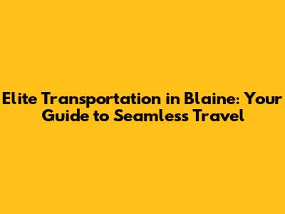 Elite Transportation In Blaine: Your Guide