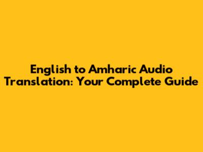 English To Amharic Audio Translation: Your Complete Guide