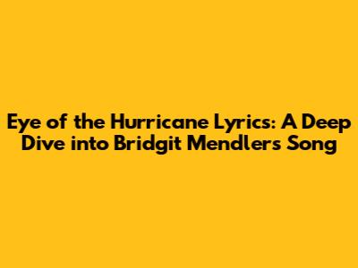 Hey guys! Ever found yourself completely captivated by a song, diving deep into its lyrics to uncover every hidden meaning? Well, that’s exactly what we're doing today! We're going to explore Bridgit Mendler's awesome track, "Eye of the Hurricane." This song isn't just a catchy tune; it's a lyrical journey that many can relate to. So, buckle up, and let’s get started!