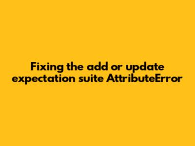 This command upgrades your Great Expectations installation to the newest available version. After the upgrade, rerun your code. If the method is included in the new version, the error should vanish. Always make sure to check the Great Expectations documentation to confirm which version introduced the add_or_update_expectation_suite method and to ensure you are upgrading to a compatible version. This is probably the fastest solution. If you want more control, you can specify the version: