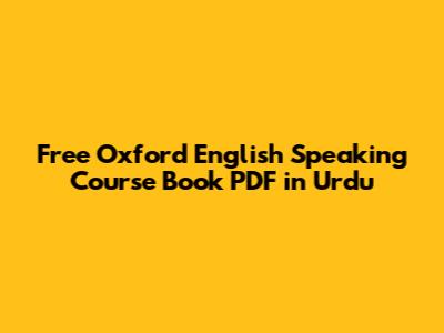Free Oxford English Speaking Course Book PDF In Urdu