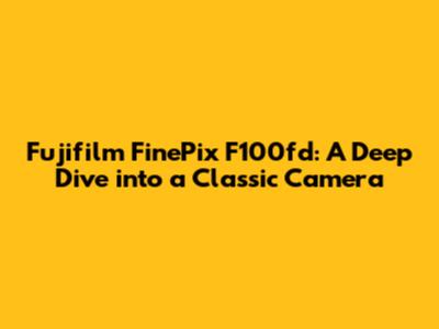 Fujifilm FinePix F100fd: A Deep Dive Into A Classic Camera