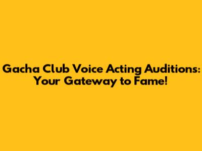 Gacha Club Voice Acting Auditions: Your Gateway To Fame!