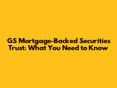GS Mortgage-Backed Securities Trust: What You Need To Know