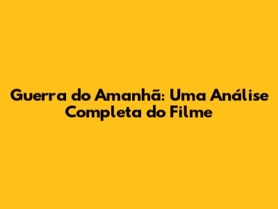 Guerra Do Amanhã: Uma Análise Completa Do Filme