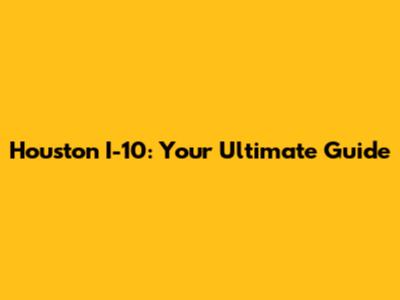 Houston I-10: Your Ultimate Guide