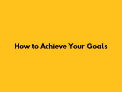 How To Achieve Your Goals