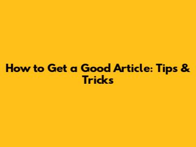 How To Get A Good Article: Tips & Tricks