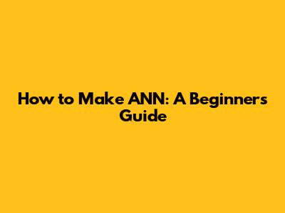 How To Make ANN: A Beginner's Guide
