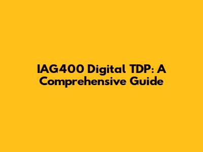 IAG400 Digital TDP: A Comprehensive Guide