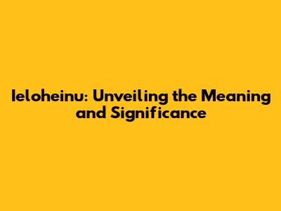 Ieloheinu: Unveiling The Meaning And Significance