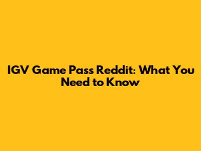 IGV Game Pass Reddit: What You Need To Know