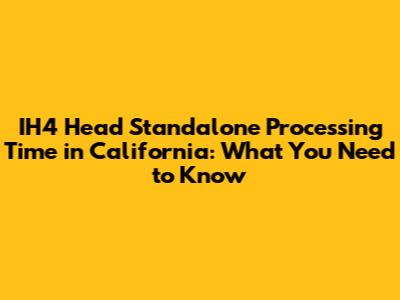 Hey guys! So, you're probably wondering about the IH4 Head standalone processing time in California, right? It's a super common question for anyone dealing with this specific type of processing or documentation. Getting a handle on timelines is crucial, whether you're a business owner trying to plan operations, an individual navigating a complex process, or just someone trying to understand how things work. In California, like anywhere else, efficiency and clarity in processing are key. This article is all about breaking down what goes into the processing time for IH4 Head standalone requests, what factors might influence it, and what you can generally expect. We'll dive deep into the nitty-gritty, so you're not left in the dark. Understanding these timelines can save you a lot of headaches and help you manage your expectations effectively. So, grab a coffee, get comfortable, and let's unravel the mystery behind IH4 Head standalone processing times in the Golden State.