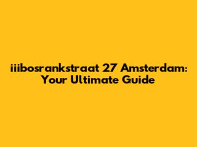 Iiibosrankstraat 27 Amsterdam: Your Ultimate Guide