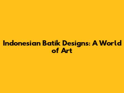 Indonesian Batik Designs: A World Of Art