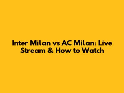 Inter Milan Vs AC Milan: Live Stream & How To Watch