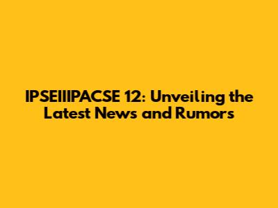 IPSEIIIPACSE 12: Latest News And Rumors