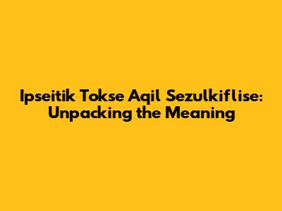 Hey guys! Ever stumbled upon a phrase that sounds super intriguing but leaves you scratching your head? Well, today we're diving deep into "Ipseitik Tokse Aqil Sezulkiflise." Now, I know what you're thinking: "What on earth does that mean?" Don't worry, you're not alone. This phrase is a bit of a mystery, and its exact meaning can be a little elusive. But that's exactly why we're here – to break it down and see what we can uncover.
