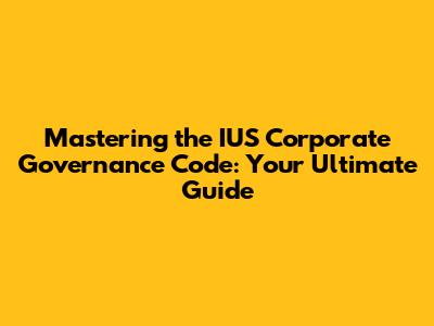 Hey everyone! Today, we're diving deep into something super important for any business looking to thrive and maintain trust: the IUS Corporate Governance Code. If you're a business owner, executive, or even just someone interested in how companies are run, you're in the right place, guys. We're going to break down what this code is all about, why it matters, and how you can leverage it to build a stronger, more ethical, and more successful organization. Think of this as your go-to manual for navigating the complex world of corporate governance, making sure your company is not just compliant but also a leader in best practices. We'll cover the core principles, the benefits, and some practical tips to get you started. So, buckle up, and let's get this knowledge party started!