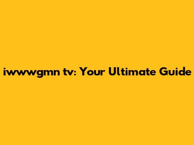 Iwwwgmn Tv: Your Ultimate Guide