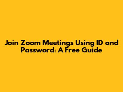Join Zoom Meetings Using ID And Password: A Free Guide