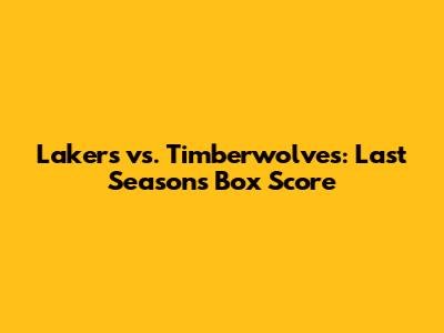 Lakers Vs. Timberwolves: Last Season's Box Score