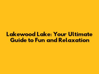 Lakewood Lake: Your Ultimate Guide To Fun And Relaxation
