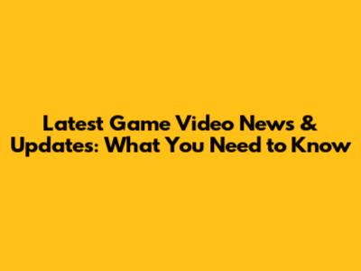 Latest Game Video News & Updates: What You Need To Know