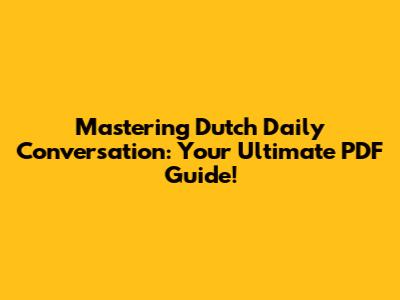 Mastering Dutch Daily Conversation: Your Ultimate PDF Guide!
