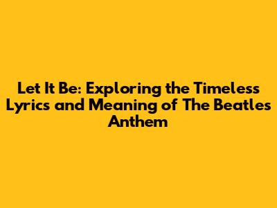 Let It Be: The Beatles' Iconic Anthem Lyrics & Meaning