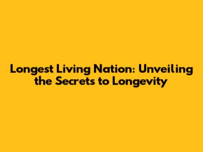 Longest Living Nation: Unveiling The Secrets To Longevity