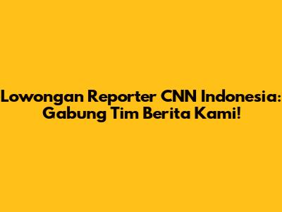 Hey guys, apakah kalian punya passion di dunia jurnalisme dan bercita-cita bekerja di media terkemuka? Kalau iya, ini berita bagus banget buat kalian! CNN Indonesia lagi membuka kesempatan emas untuk kalian yang ingin menjadi reporter dan menjadi bagian dari tim berita yang dinamis dan kredibel. Siapa sih yang nggak kenal CNN? Media global ini terkenal banget dengan liputan beritanya yang cepat, akurat, dan mendalam. Nah, sekarang kalian punya kesempatan untuk berkontribusi langsung di edisi Indonesianya. Jadi, kalau kalian punya skill investigasi yang tajam, kemampuan menulis yang oke, dan keberanian untuk terjun langsung ke lapangan, yuk, simak terus info selengkapnya!
