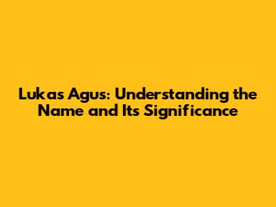 Lukas Agus: Understanding The Name And Its Significance
