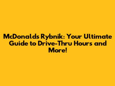 McDonald's Rybnik: Drive-Thru Hours & More!